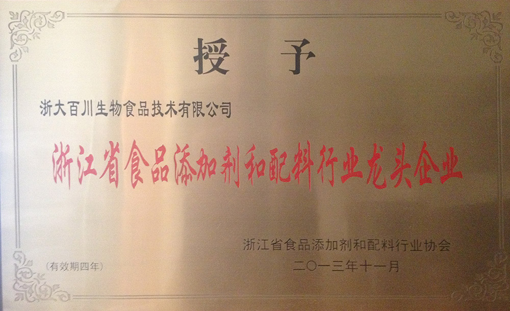 - Leading Enterprise in Food Additive & Ingredients Industry of Zhejiang Province